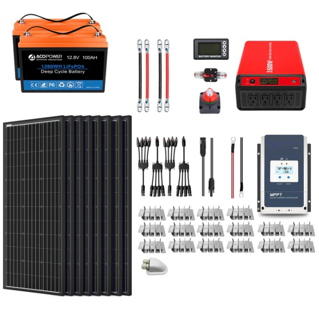- Perfect kit for having an off-grid 12 volt Lithium battery 12V Solar Panel system. 1500 Watt Pure Sine Wave Inverter provides plenty of AC power 120VAV to run your household appliances and the battery bank will supply plenty of energy for moderate use; Designed for RVs, cabins, homes, boats, back-up and remote power use