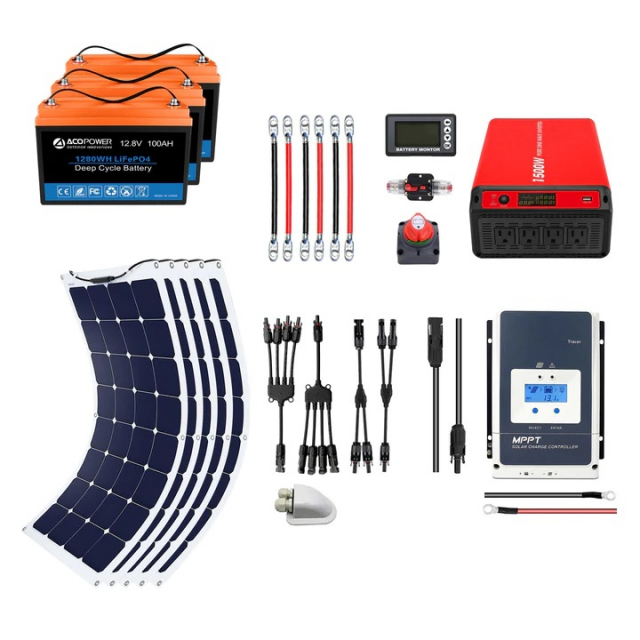 ACOPOWER 330 Watt Flexible RV Solar system comes with everything you need to start Producing Free, Clean Power from the Sun! Perfect for RV's, Boats, Cabins and Back-up Power!