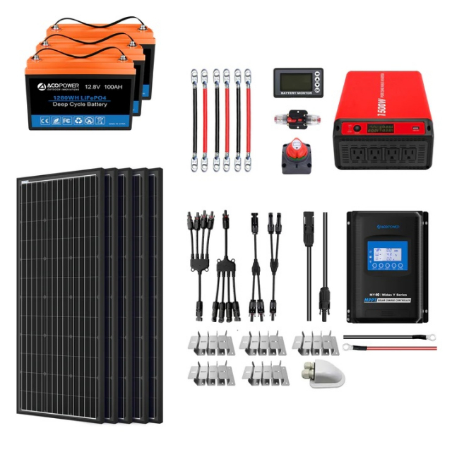 ACOPOWER Lithium Battery Solar Power Complete System comes with everything you need to start Producing Free, Clean Power from the Sun! Perfect for RV's, Boats, Cabins and Back-up Power!