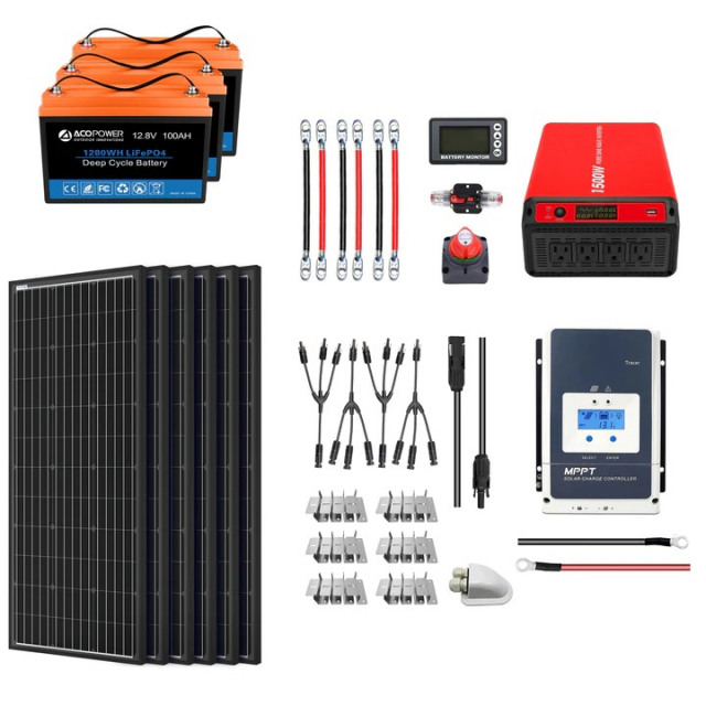 ACOPOWER Lithium Battery Solar Power Complete System comes with everything you need to start Producing Free, Clean Power from the Sun! Perfect for RV's, Boats, Cabins and Back-up Power!