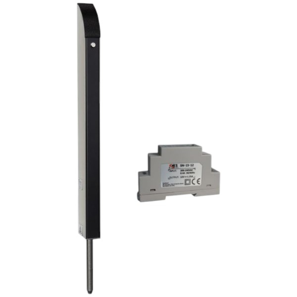 AES Global, TL-SB-150-K, Tomalok 150mm Electric Drop Gate Bolt in Black and Stainless with 24V Din Rail Power Supply