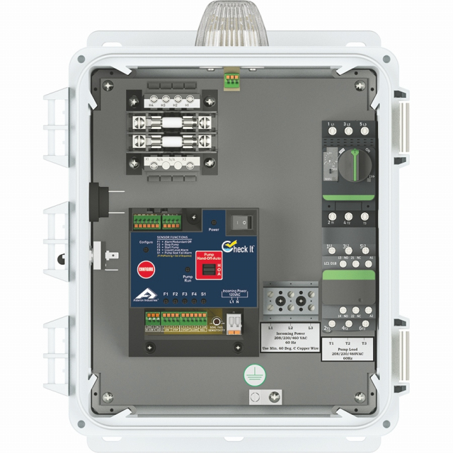 Alderon, 2010662, Check It™ CKIT3S460CO17-23+3AGHPS20 Three Phase Simplex, 208/230/460VAC, 17 - 23 Amps, Enclosure Size 12" x 10" x 6", (3) Altra Gold Control Switches, Normally Open, Stainless Steel Pipe Clamps, 20' Cable