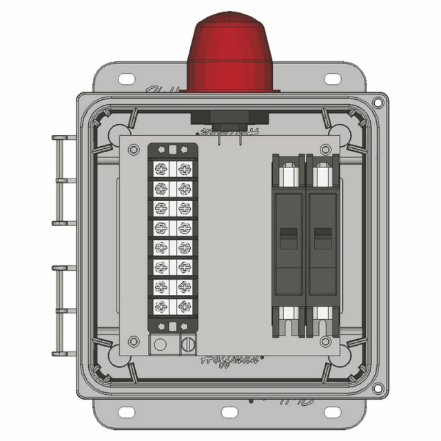 Alderon, A21000, Aerobic Single Phase Simplex, 120VAC, 15 Amps, Type 4X, (2) Circuit Breakers: Alarm and Pump, Pump Test Switch, Alarm Activation/Single Beacon and Buzzer: High Level Alarm Beacon (Red)