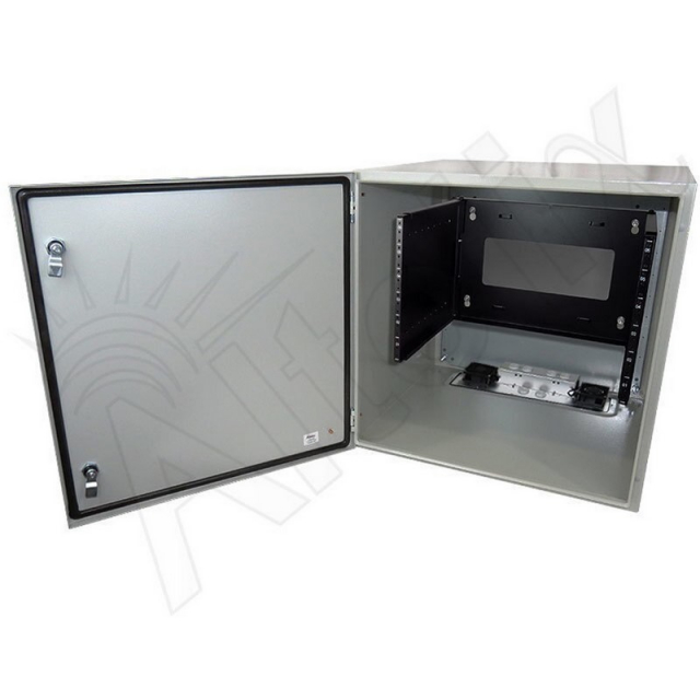 Both the enclosure and door are finished in a rugged epoxy polyester textured light gray powder coat finish.