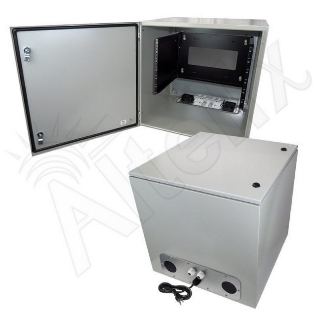 Altelix, NS242424VFA1C-20A-85-R6U, 24" x 24" x 24" 120VAC 20A Steel NEMA Enclosure for UPS Power Systems with 19" Wide 6U Rack, 20A Power Outlets, Power Cord and 85°F Turn-On Cooling Fans