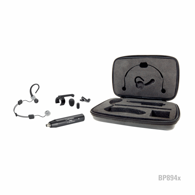 Audio-Technica's innovative BP894x MicroSet offers the ultimate in low-profile, high-performance audio. The ultra-lightweight microphone hooks securely behind either ear and features a rotating capsule housing with talk-side indicator for perfect polar pattern placement. With its capacity for aiming the cardioid condenser capsule directly at the sound source, the microphone provides excellent rejection of outside noise, with exceptional gain-before-feedback when used with live sound systems and stage monitors.
