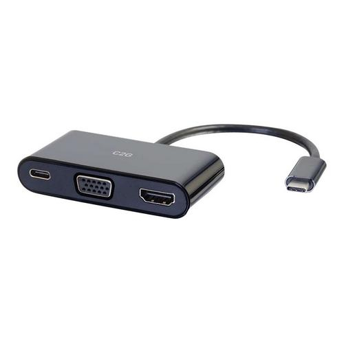 The USB-C to HDMI and VGA Adapter Converter with Power Delivery is an ideal solution for connecting a USB-C or Thunderbolt 3 enabled laptop, tablet, or desktop computer to HDTVs, projectors, or other displays with HDMI and VGA ports and features a USB Type-C port with power delivery. This adapter converter offers a light-weight, portable, and easy way to deliver audio/video and stay charged up while in the office or on the road. Simply connect to a USB-C equipped laptop, tablet or smartphone and display HDMI audio/video or VGA video content plus deliver power to keep those devices fully charged. Supporting resolutions up to 4K (3840x2160 at 30Hz) for HDMI and 1920x1080p at 60Hz for VGA, this adapter converter mirrors or extends a high-quality video image to the connected display, while delivering up to 60W of charging power to the connected device. This adapter also allows HDMI and VGA to display at the same time, as well as independently.