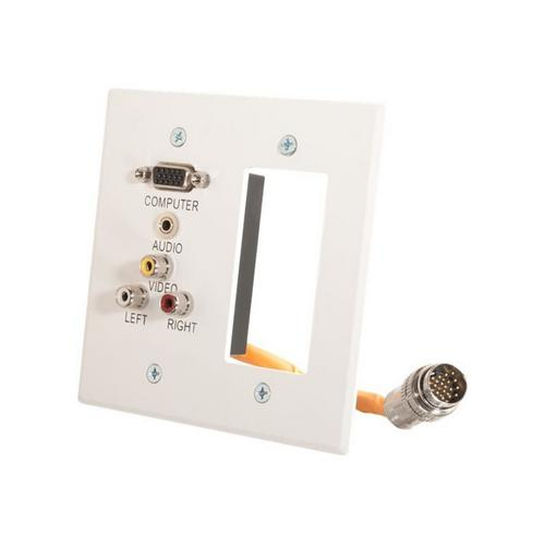 RapidRun is designed to be the standard for in-wall audio/video installations. Using pre-terminated Break-away flying leads and wall plates with an in-wall runner ensures flexible, efficient, high quality connections for all types of equipment with no field terminations. RapidRun Multi-Format represents the most significant upgrade to the RapidRun cabling solution to date. With enhanced engineering that includes individually shielded pairs and an isolated ground for audio lines, this solution meets the rigorous demand for applications in which multiple audio/video devices are run over a single cable. With the advent of the "Analog Sunset" in 2014, digital solutions are being developed to expand the RapidRun Multi-Format line. These solutions make this innovative system ideal for environments where analog equipment will eventually be upgraded to digital. Ideal for educational and institutional installations, this wall plate receives PC video, 3.5mm stereo audio and RCA composite audio/video from one cable. Constructed from aluminum for durability, this wall plate has a locking connector that enables the integrator to save valuable space inside the surface mount or electrical box that typically is already packed with cables. The included keystone bezels will work with most brands of keystone inserts including Leviton, L-com, NetKey, ADC Krone, HellermannTyton, and Allen Tel. Please note: Each complete RapidRun Multi-Format solution requires a break-away flying lead or wall plate to terminat each end of the runner cable. Each runner requires (2) break-away flying leads, (2) wall plates, OR (1) break-away flying lead and (1) wall plate.