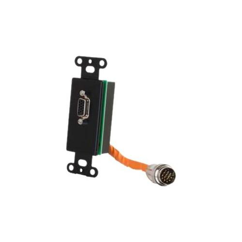 RapidRun is designed to be the standard for in-wall audio/video installations. Using pre-terminated break-away flying leads and wall plates with an in-wall runner ensures flexible, efficient, high quality connections for all types of equipment, with no field terminations. Constructed from aluminum for durability, this wall plate has a locking connector that enables the integrator to save valuable space inside the surface mount or electrical box that typically is already packed with cables. Ideal for educational and institutional installations, this wall plate sends VGA over a single multi-format runner cable. It is commonly used on the teacher's station (computer) end of classroom setups with the corresponding flying lead used at the projector.