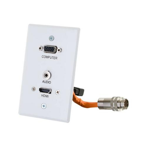 RapidRun is designed to be the standard for in-wall audio/video installations. Using pre-terminated Break-away flying leads and wall plates with an in-wall runner ensures flexible, efficient, high quality connections for all types of equipment, with no field terminations. Ideal for educational and institutional installations, this wall plate allows VGA video, 3.5mm stereo audio to be run over one runner cable, while the HDMI pass through allows for a seamless transition to an in-wall HDMI cable. This wall plate is constructed from aluminum for durability and a long life.