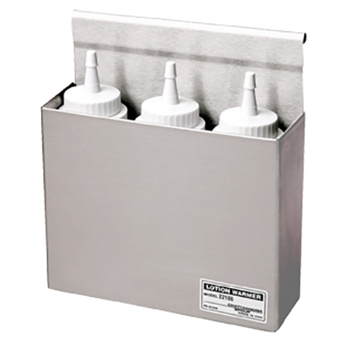 Hangs on the front of the Hydrocollator¨ E-1 or E-2 Heating Unit and uses the unit's warmth to keep lotion or gel at a comfortable temperature. Bottles are not included.