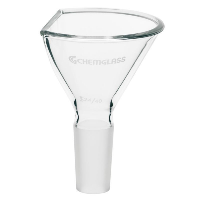 Chemglass, CG-1721-03, 100mm Powder Funnel, Modified, 24/40 Inner Joint, 35mm Flat Sided