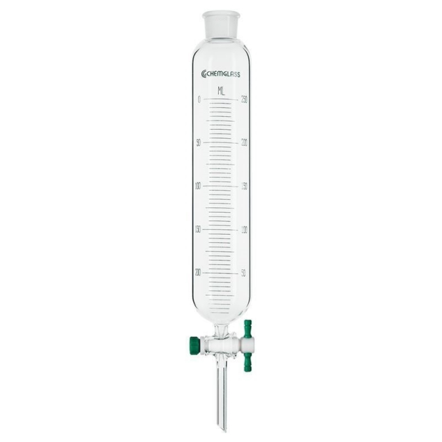 Chemglass, CG-1730-05, 1000 mL Cylindrical Separatory Funnel, Graduated, #27 Outer Stopper Neck, 4 mm Stopcocks, 485 mm OAH