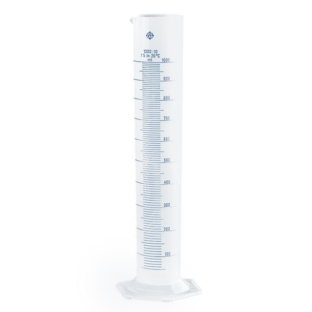 Cylinders are manufactured from polypropylene. They meet Class B specifications per DIN 12681. Cylinders have ring molded graduations and have blue screening to simplify the measurements.