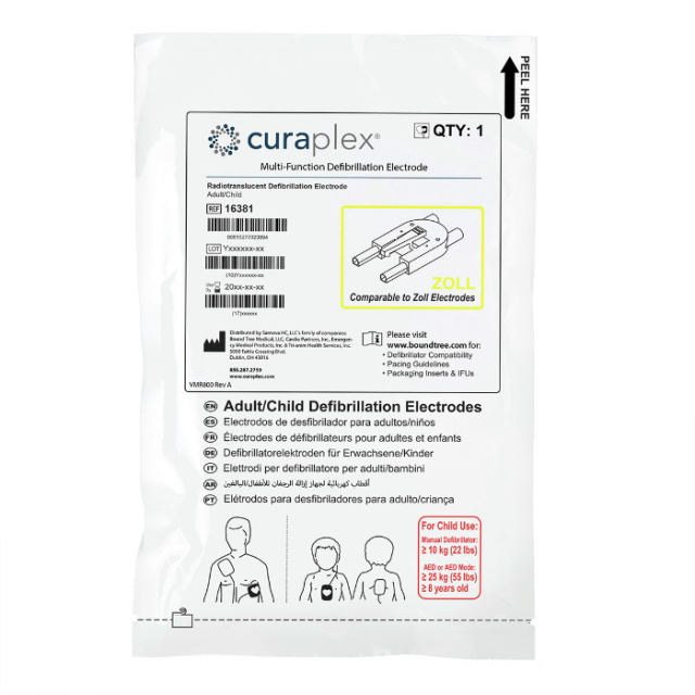 Curaplex, 16381, Zoll Medical Multi-Function Defibrillator Pad, Leads In, Adult/Child > 10kg (22 lbs)