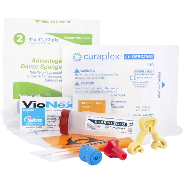 This kit contains essential items for starting an IV on a patient in an emergency setting. Conveniently packaged into one easy-to-use, compact kit, this set saves you precious time when it matters the most.
