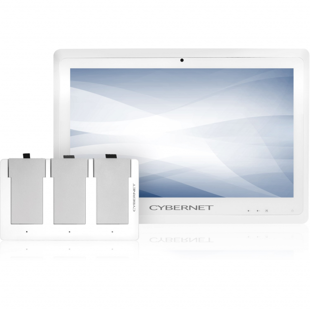 Cybernet's hot-swap battery medical monitors are powered by their own lithium-ion batteries, and they offer two DC power outlets. They can power a thin client PC as well as an extra peripheral. As a result, hospitals are able to pair these devices with non-powered carts at extreme savings. The batteries on XB monitors have vastly superior run times when compared to powered carts, lasting an entire shift, and hot swap technology allows these units to run 24/7 without ever needing to be plugged in. Simply swap out depleted batteries with fresh ones and you're good to go.