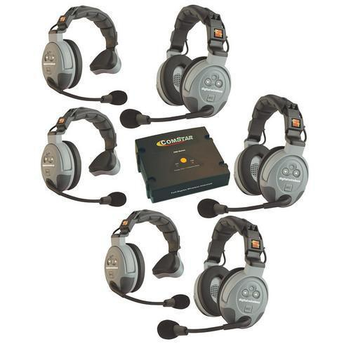 The COMSTAR XT-6 6-User Full Duplex Wireless Intercom System from Eartec is a fully functional wireless intercom that offers full duplex communication in a simple design that does not require the use of beltpacks. The system consists of a Com-Center base station and 6 wireless headsets. Additional headsets can be added to the system, allowing you to create a wireless network of up to 8 users who can all communicate simultaneously with no delay or voice activation; ideal for applications where teams need full use of their hands. You can even split users into 2 groups of 4 people, or bring everyone together in conference mode.