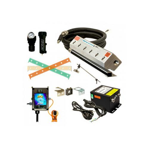 EXAIR's Gen4 Deluxe Super Ion Air Knife Kits include everything needed for optimal setup and operation: power supply, EFC, Universal Air Knife Mounting System, shim set, filter separator and pressure regulator. The Gen4 Super Ion Air Knife removes static electricity from plastics, webs, sheet stock and other product surfaces where tearing, jamming or hazardous shocks are a problem. The laminar sheet of air sweeps surfaces clean of static, particulate, dust and dirt. Production speeds, product quality and surface cleanliness can improve dramatically.