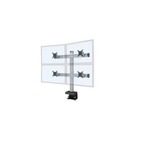 The Bild 2 over 2 quad monitor mount suspends four monitors above your work surface in two rows. Monitors can be positioned flat or on an angle and tilted up to 200 degrees. This highly adjustable quad monitor setup enables easy installation and replacement of monitors.