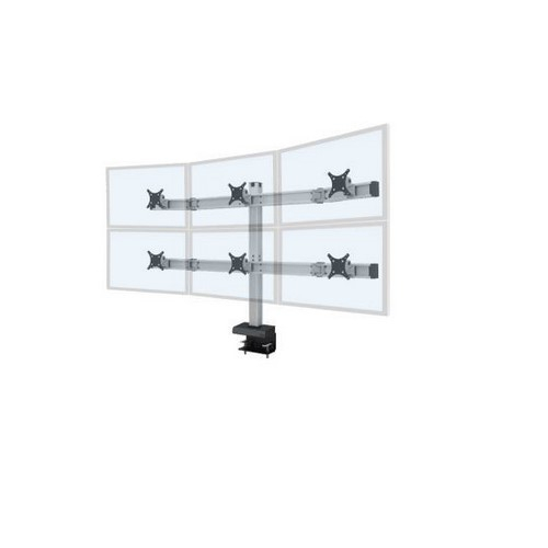 Multi-monitor stand mounts six monitors – two rows of three monitors side-by-side. The 3 over 3 features a robust, solid construction with clean aesthetic design. Choose from several mounting options.