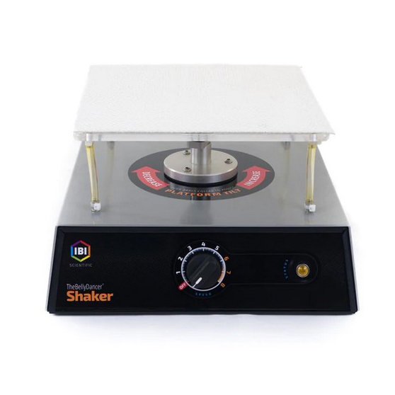 The Belly Dancer shaker has a simple, durable construction and is made of chemically resistant materials including stainless steel and anodized aluminum parts with a high bake ester finish on the case. The Belly Dancer comes with an open-sided platform to accommodate oversized containers and a removable, washable non-skid platform mat. The flat power cord can also pass through the door gasket of incubators without compromising the environment. The platform can easily be adjusted with the Platform Pitch Control collar from level motion to an 8° pitch. The Belly Dancer can hold up to 20 lbs. with extremely quiet operation. The ambient operating temperature range is 0° C to 40° C. The speed varies from 0 to 100 rpm with no cogging at slow speeds.