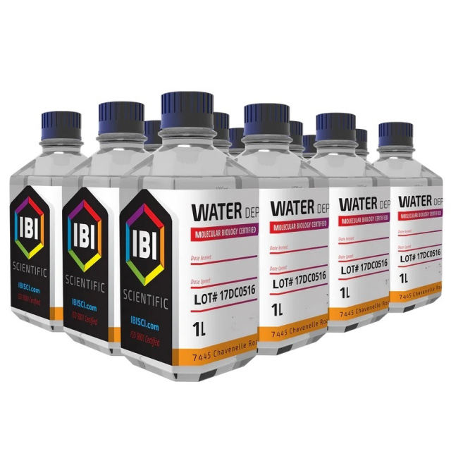 IBI DEPC Treated Water is ideal for all applications in a molecular biology lab including PCR, RT-PCR, restriction enzyme assemblies, modifying enzyme assemblies, transfection, cloning, transformation, and all general molecular biology lab procedures. DEPC water is specifically developed for use in RNA assemblies due to the inactivity of RNAse during DEPC treatment. IBI DEPC Treated Water is manufactured under stringent conditions. The purification process for this 18.2 megohm product includes continuous deionization, reverse osmosis, UV treatment, 01 µm filtration, followed by steam sterilization in final packaging.