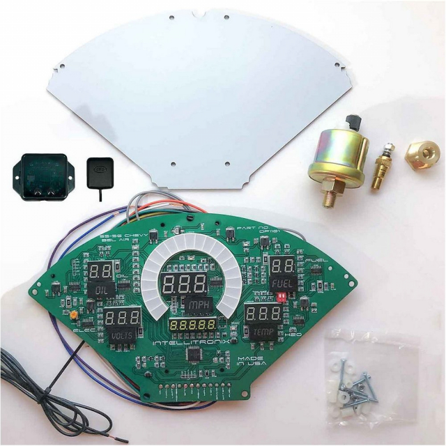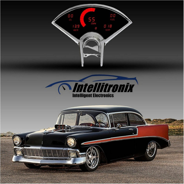 Intellitronix, DP1101R-S9020, 1955-1956 Chevy Bel Digital Replacement Gauge Panel with Red LED Color and GPS Speedometer Sending Unit
