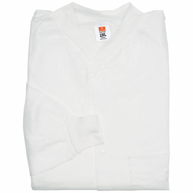 Comfortable, breathable 44" long lab coat with snap closures is ideal for extended wear.