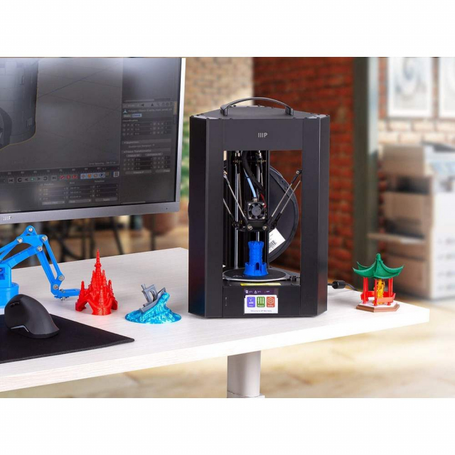 The Mini Delta V2 is an update of the bestselling Mini Delta 3D Printer from Monoprice™, the world's best-selling brand in 3D printing. We've gathered customer suggestions and feedback since the original Mini Delta's release and are proud to offer a printer designed with those customers in mind. The adaptive touchscreen makes it easier to navigate through the updated and simplified user interface. The updated auto-leveling system makes starting a print much faster and simpler. The Wi-Fi® setup is now just as simple as the rest of the printer. Thanks to quieter driver motors, the Mini Delta V2 operates at a whisper-quiet 30dBA.