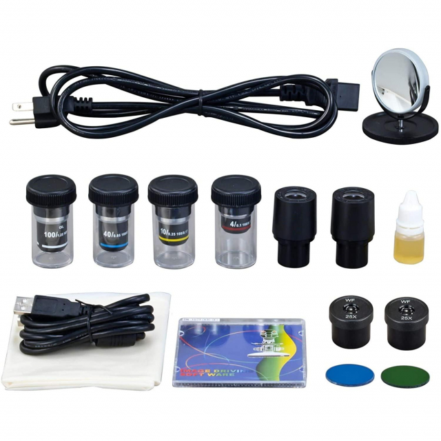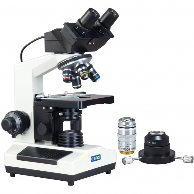 OMAX, MD827Z30-A191BOIL, 40X-2500X Built-in 3MP Digital Compound Microscope with Oil Darkfield Condenser, 100X PLAN Objective
