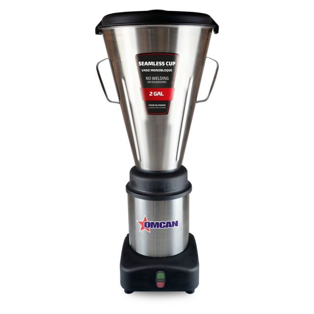 Omcan Countertop Blenders are equipped with a stainless steel container, blades, and a plastic lid, designed specifically for commercial establishes. The machine is versatile and highly efficient in creating a wide array of delicious recipes, from hot soups and creamy sauces to cold treats like mayonnaise, making them essential tools for aspiring chefs. The seamless cup made of stainless steel without welding features 4 internal pressed ribs, is suitable for commercial blenders, offering advantages in various businesses due to its easy use, cleaning, and efficiency. The design allows you to prepare large, heavy recipes like creams, sauces, and soups efficiently while ensuring homogeneous processing, saving time, and increasing productivity. Its versatility, hygienic design, and ability to process both hot and cold recipes make it a valuable tool for various kitchen settings. The detachable stainless steel monobloc container ensures effortless cleaning and maintenance, facilitating seamless transitions between different recipes. Food-grade rubber lid with a dispenser to add ingredients during preparation is both convenient and mess-free. The robust connection system and secure lid closure guarantee that your mixture is safely contained while the powerful 0.5 HP motor operates. User-friendly design makes cleaning up a breeze, ensuring a quick and straightforward cleanup process. On-Off button with silicone cover for safe and simple operation. This innovative kitchen appliance not only streamlines cooking but also enhances your culinary journey to levels of creativity and efficiency.