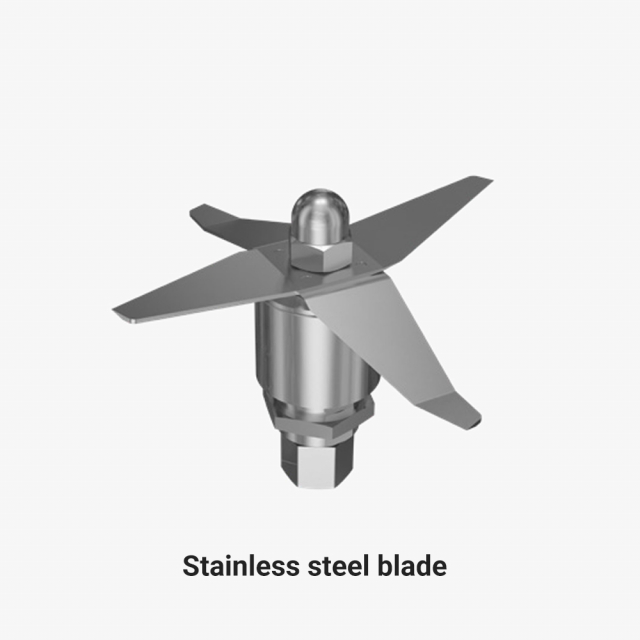 - Stainless steel cup, blade, and base