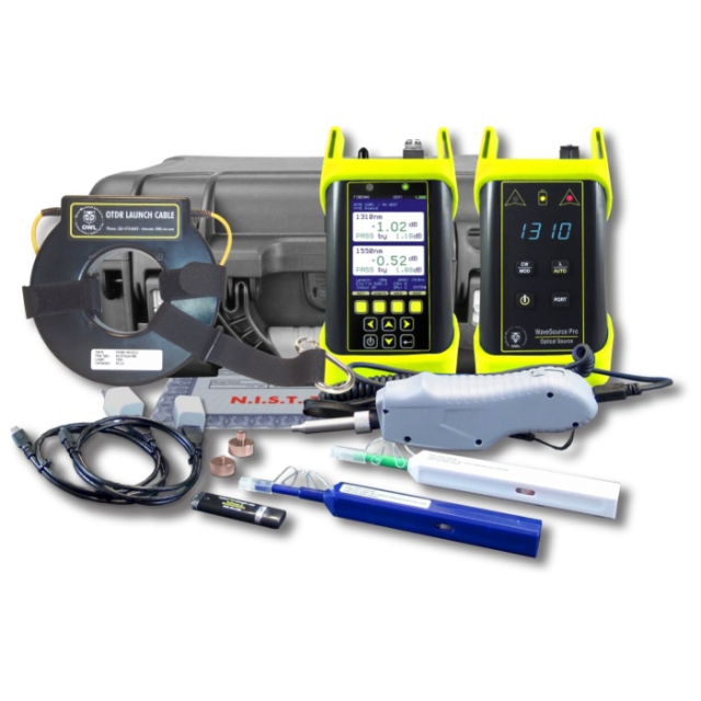 Many fiber optic network bids and Requests For Quote (RFQ) cite national and international cabling standards which specify the guidelines that the installer must follow during installation. Adherence to such standards ensures the quality of the installation and guarantees that the network will perform as it was designed. The process of testing a network installation to ensure its adherence to such standards is called certification, and often requires hard-copy documentation as proof of adherence to standards. With the rapidly expanding need for bandwidth of fiber networks coupled with increased capability (and decreasing cost) of fiber test equipment, cabling standards have evolved to include additional fiber optic test procedures (FOTP) to reflect more thorough testing and measurement of fiber networks, for example, OTDR link characterization and/or fiber connector endface analysis. The Fiber OWL 7+ Singlemode Bundle contains the tools necessary for certifying fiber optic links against a myriad of popular cabling standards in singlemode networks, up to Tier 2 certification as specified in the TIA-568-3.D cabling standard. The Fiber OWL 7+Fiber OWL 7+ (p/n: F7+S) optical power meter enables singlemode certification, up to and including Tier 2 certification as defined in the TIA-568- 3.D cabling standard, each containing a user-friendly Fiber Link Wizard with color diagrams to guide the setup process, calculate the link budget, and set the optical reference. Thousands of LOSS/OTDR fiber runs may be stored in internal memory, and can be downloaded to a PC for report generation with OWLView software. Intelligent automated testing functions include automatic dual-wavelength storage and auto-wavelength recognition which reduce testing time and human error. The universal detector port in each Fiber OWL 7+ certifier comes with 2 adapter caps, one for 2.5mm connectors such as SC, ST, and FC, and the other for 1.25mm connectors such as LC, and the integrated OTDR port is used to measure the fiber cable length as well as characterize the fiber link. A visual fault locator is also included for basic troubleshooting of near-end faults, and check for fiber continuity and polarity. The WaveSource Pro Singlemode (p/n: WPSX) fiber optic light source is designed for accurate testing and certification of singlemode networks at 1310nm and 1550nm. Its dual-wavelength outputs are temperature-stabilized for accurate measurements. The WPSX has a built-in auto-wavelength switching protocol designed to synchronize the power meter wavelength of the 7+ with the current output wavelength. The light source comes configured with SC connector ports.As a bundle, the VS-400-U video scope allows users to inspect and capture endface images, which can than be imported into OWLView software to produce a comprehensive Tri-Report as shown at right.