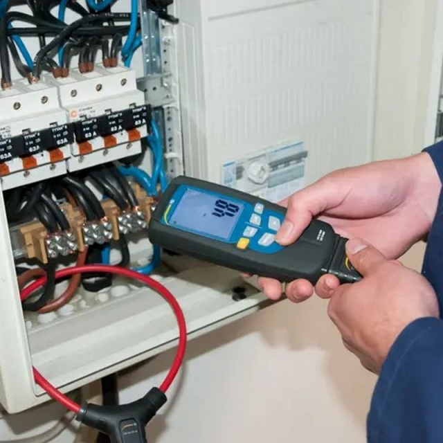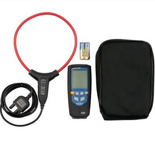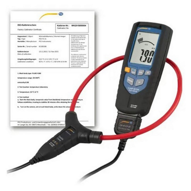 The flexible current clamp PCE-CM 40 is suitable for current measurements up to 3000 A AC. In addition to TRMS current measurement, the flexible current clamp can be used to measure inrush currents. The measurement of the current takes place via a flexible Rogowski coil. This means that the electrical conductor around which the flexible current clamp is placed induces a voltage in the ammeter. This voltage is proportional to the current flow through the electrical conductor. This makes it possible to measure very high currents with the flexible current clamp almost without risk. In addition to the current measurement, the flexible current clamp is able to measure frequencies in the range of 50 - 400 Hz.