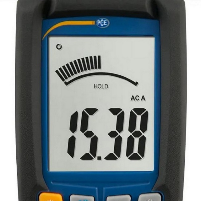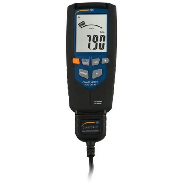 The PCE-CM 40 flexible current clamp is used to measure the AC current in machines, systems and electrical installations. Due to the flexible Rogowski coil, which has a diameter of 170 mm, the clamp can be used wherever conventional space clamps can not be used. The measured value of the alternating current is displayed on the illuminated LCD. Furthermore, the measured values can be stored in a memory that can be read out via the Bluetooth interface.