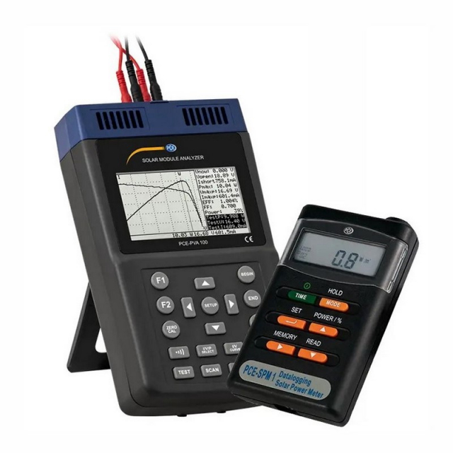 The environmental meter is a useful tool to examine solar cells for their characteristics. With a DC voltage range of 0… 60V and a DC current range of 0… 12 A, the photovoltaic meter covers a large number of solar modules. The determined characteristic curves are saved directly on the solar module tester. Up to 100 measurements can be stored in the data memory of the photovoltaic meter. The stored measured values can then be read out and further processed on a PC with the associated software. In addition, it is possible to operate the photovoltaic meter completely via the software.