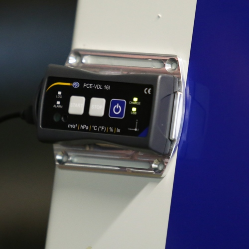 The Vibration Meter PCE-VDL 16I contains sensors for the following physical units: temperature, humidity, air pressure, light, and 3-axis acceleration. The max. sampling rate of the acceleration sensor is 800 Hz, and the remaining sensors are sampled with max. 1 Hz. The environmental tester is therefore ideally suited for use in fault diagnosis, stress testing, machine inspection, shock measurements, and preventive maintenance.