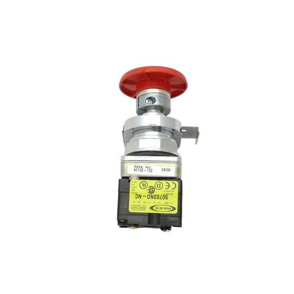 The following switch is a hand operated, control circuit device, rated 'Heavy Duty' normally for use with electromagnetic equipment. The body is made from die-cast zinc. The red mushroom ergonomic shaped plunger is molded from DuPont Delrin 100ST Acetal for improved impact resistance and is solid color throughout.