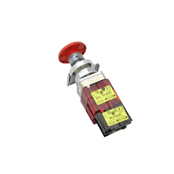 The following switch is a hand operated, control circuit device, rated 'Heavy Duty' normally for use with electromagnetic equipment. The body is made from die-cast zinc. The red mushroom ergonomic shaped plunger is molded from DuPont Delrin 100ST Acetal for improved impact resistance and is solid color throughout.