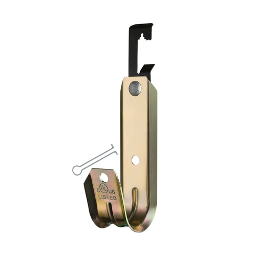 Batwing J Hooks, Size 1-5/16" with Retainer Pin, High Quality Steel for Strength & Durability. Beveled Edge provides proper cable support, cUL Listed, Double Zinc Plated for Greater Corrosion Resistance - 10 pc/Inner Box