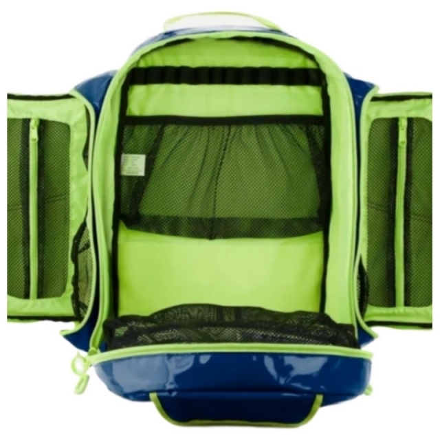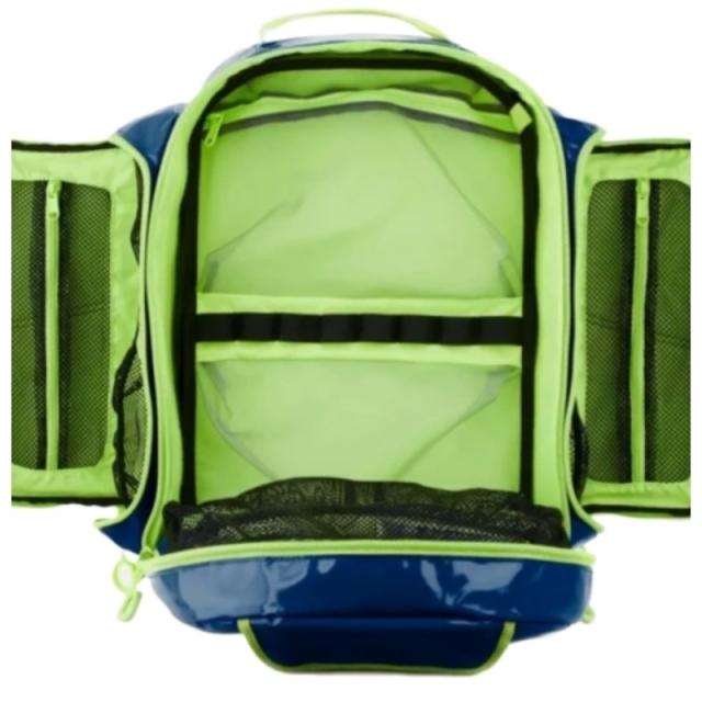 The two side compartments feature multiple mesh storage pockets for superior organization.