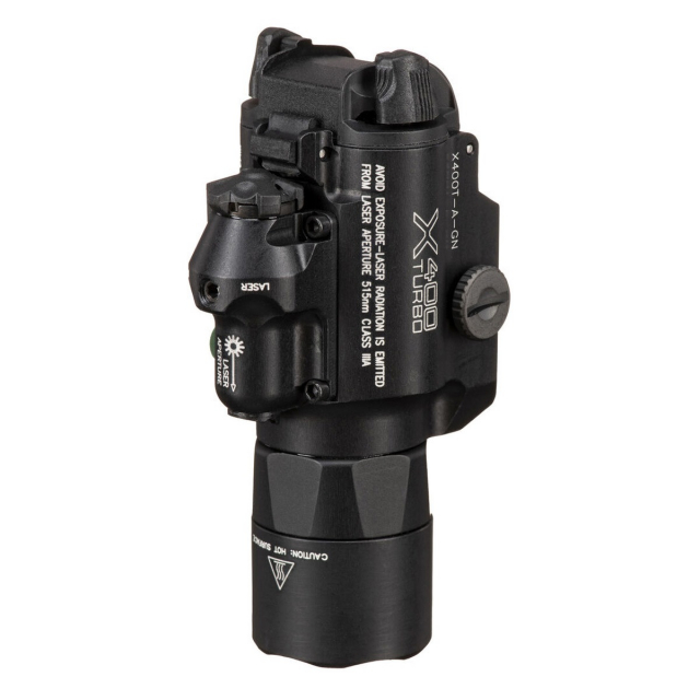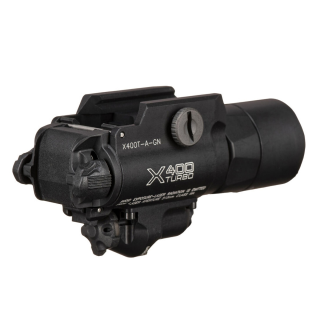 The Turbo Series version of X400 handgun WeaponLight delivers a stunning 66,000 candela of intense, tightly focused, far-reaching white light with a hot spot that is tremendously effective. You can count on the X400T-A to help you positively identify threats at extreme distances, and you can trust its laser to provide crucial visual guidance without acquiring your sights if you're forced to respond from a non-standard shooting position. Ambidextrous switching provides one-finger control of momentary-on or constant-on activation. Its rugged, aerospace aluminum body is Mil-Spec hard anodized for scratch and corrosion resistance and sealed to make it weatherproof. The X400T-A delivers a standard of excellence you can trust with your life.