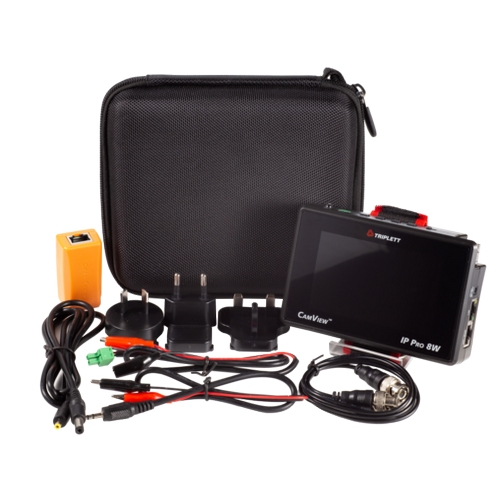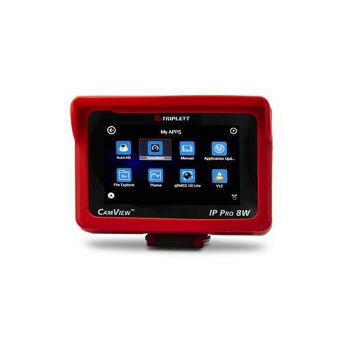The CamView IP Pro-8W has a 4 inch IPS touch screen monitor designed for the maintenance and installation of IP cameras, analog cameras, TVI, CVI, AHD cameras, as well as for testing 4K H.264 /H.265. The 800 x 480 resolution enables it to display network HD cameras and analog cameras in high resolution. The unit supports ONVIF PTZ and analog PTZ control and is compatible with more than 30 protocols. The combination of touch screen and key buttons make the CamView IP Pro-8W very user- friendly. Other functions include providing 24W PoE power to your camera, PING and IP address searching, LED Flashlight, DC 12V 3A power output and much more. Its portability, user-friendly design and many other functions make the IP tester an essential tool for all installers and technicians. Comes complete with Li-ion battery, AC adapter/charger, BNC/BNC cable, RS485 cable, audio cable, 12V camera power cable, wrist strap, and carrying case.