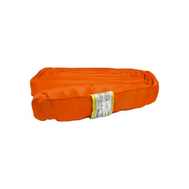 100% made of polyester. Endless round slings are used to hoist, tie or pull loads. Specially manufactured for very heavy loads. Color: orange. Length: 26.24 ft. Capacity: 11 tons.